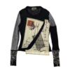 Top con mangas de malla y diseño de patchwork estilo carta de amor retro 🎞️